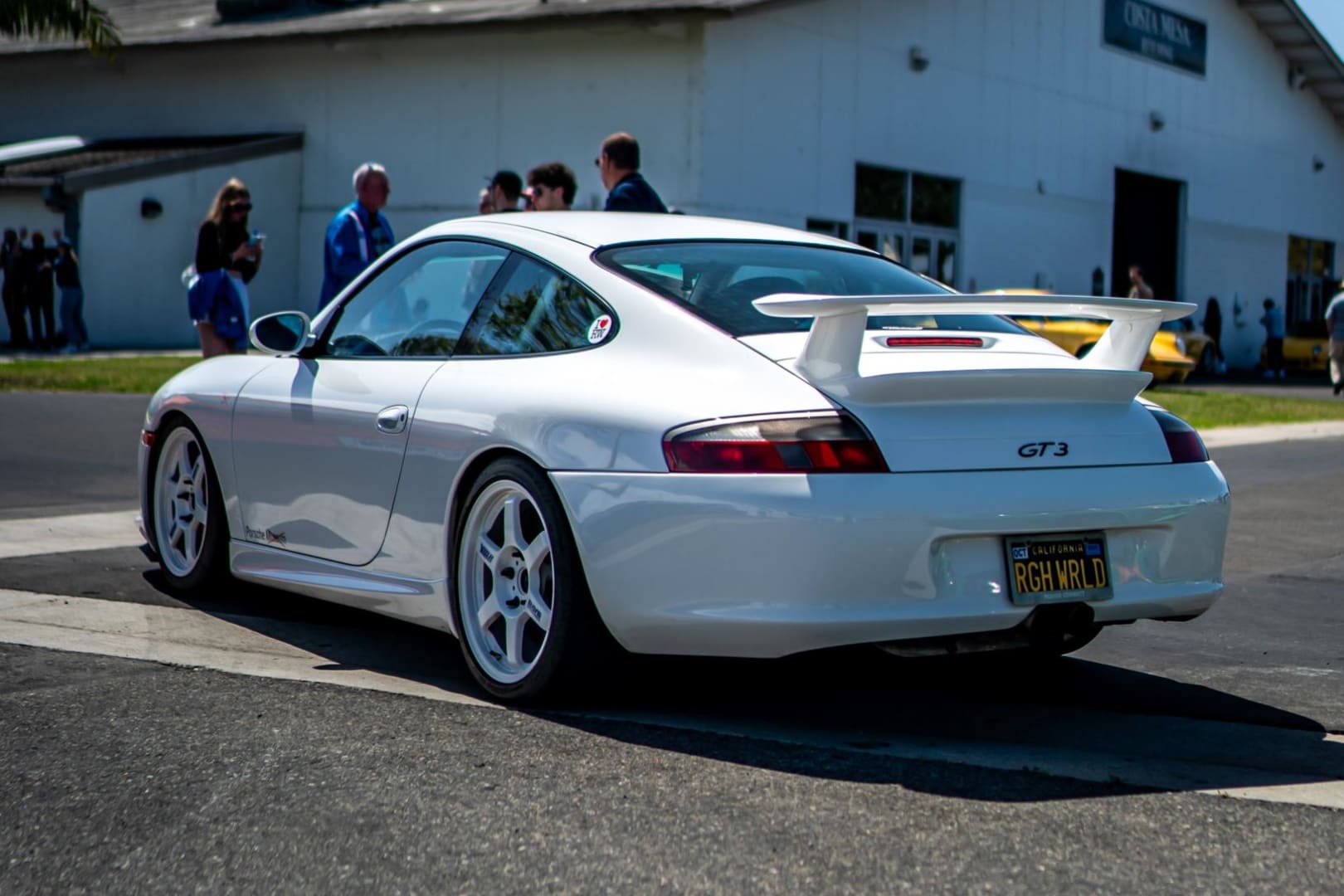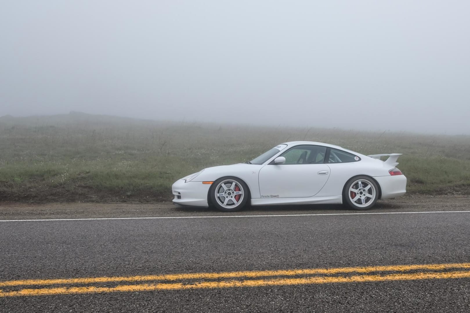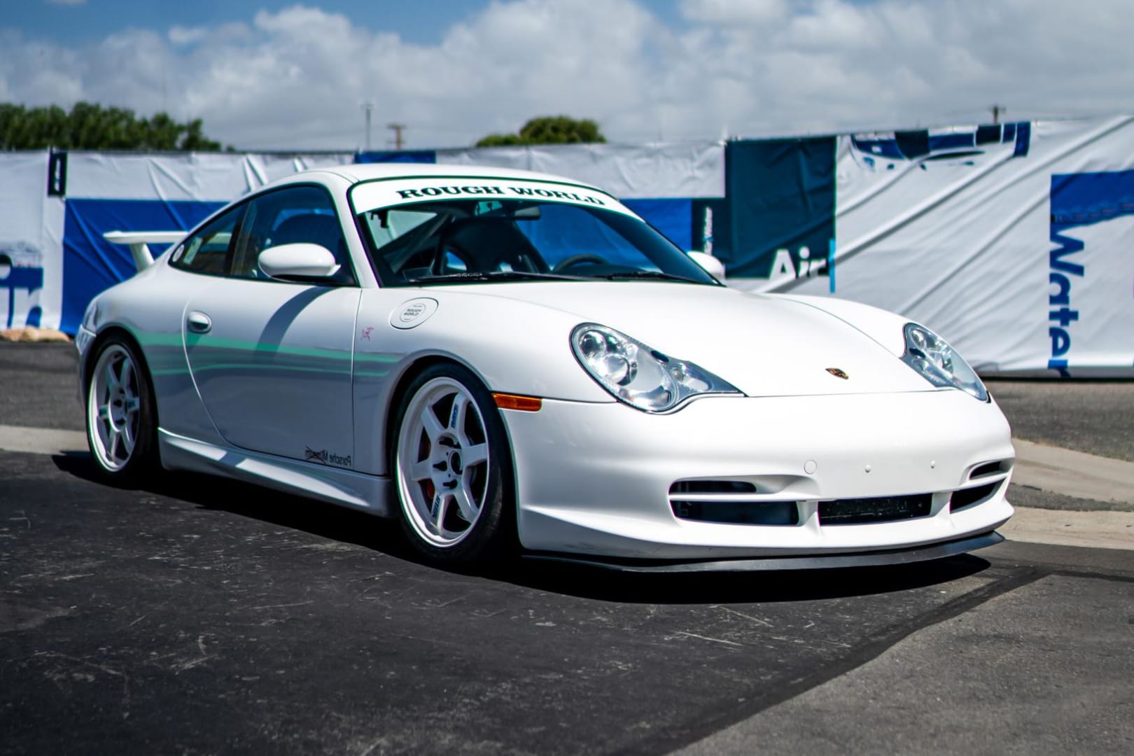 This 996.2 911 GT3 sports a roll bar and a 991 GT3 muffler to let the glorious flat-6 Mezger be heard as the tach sweeps past 8k revs.