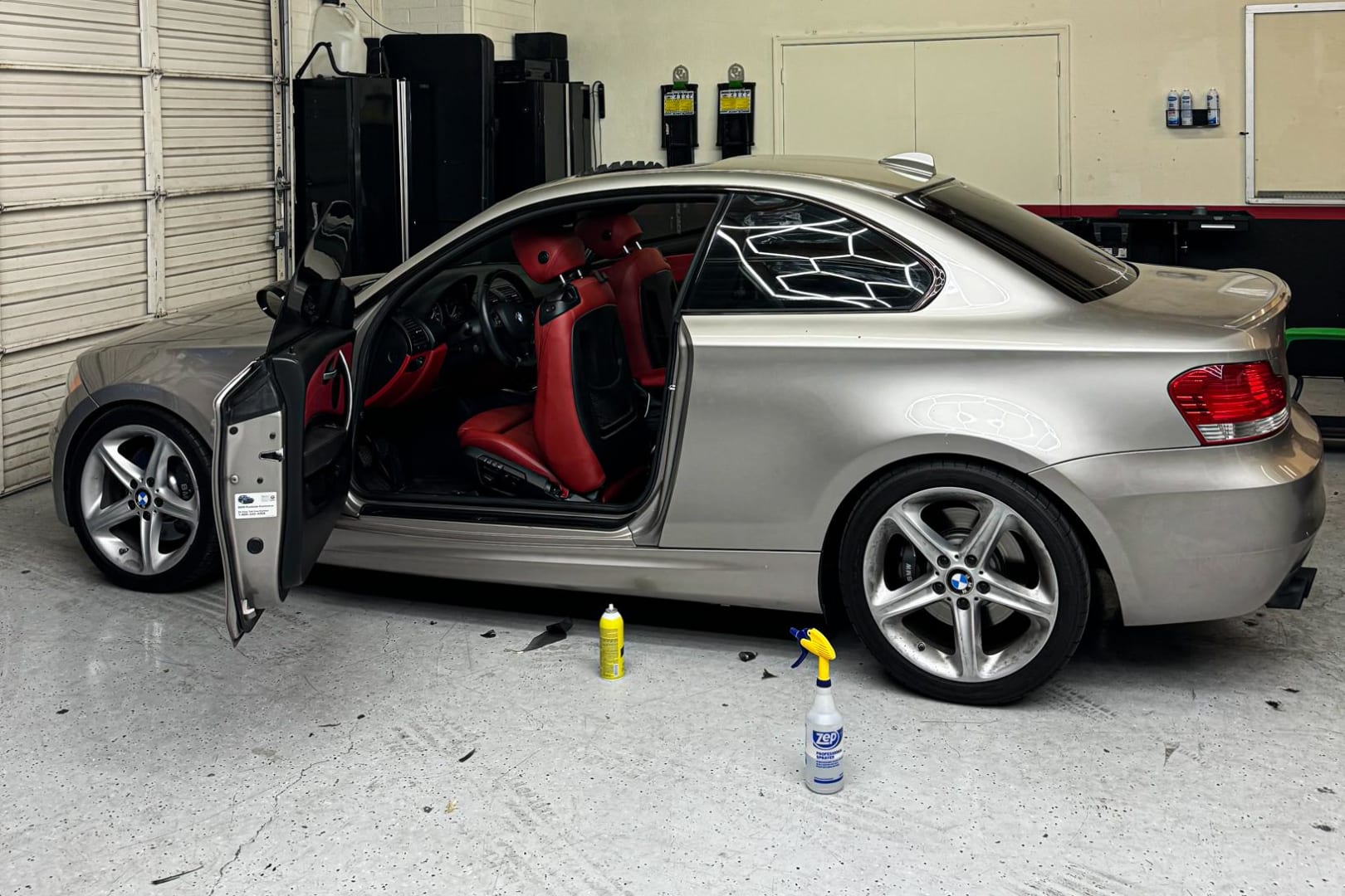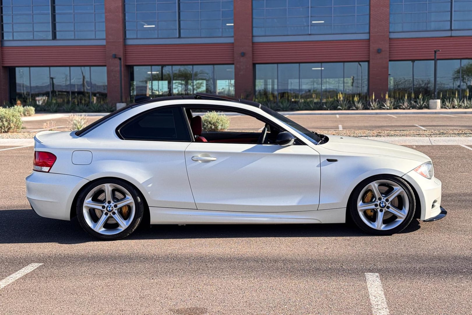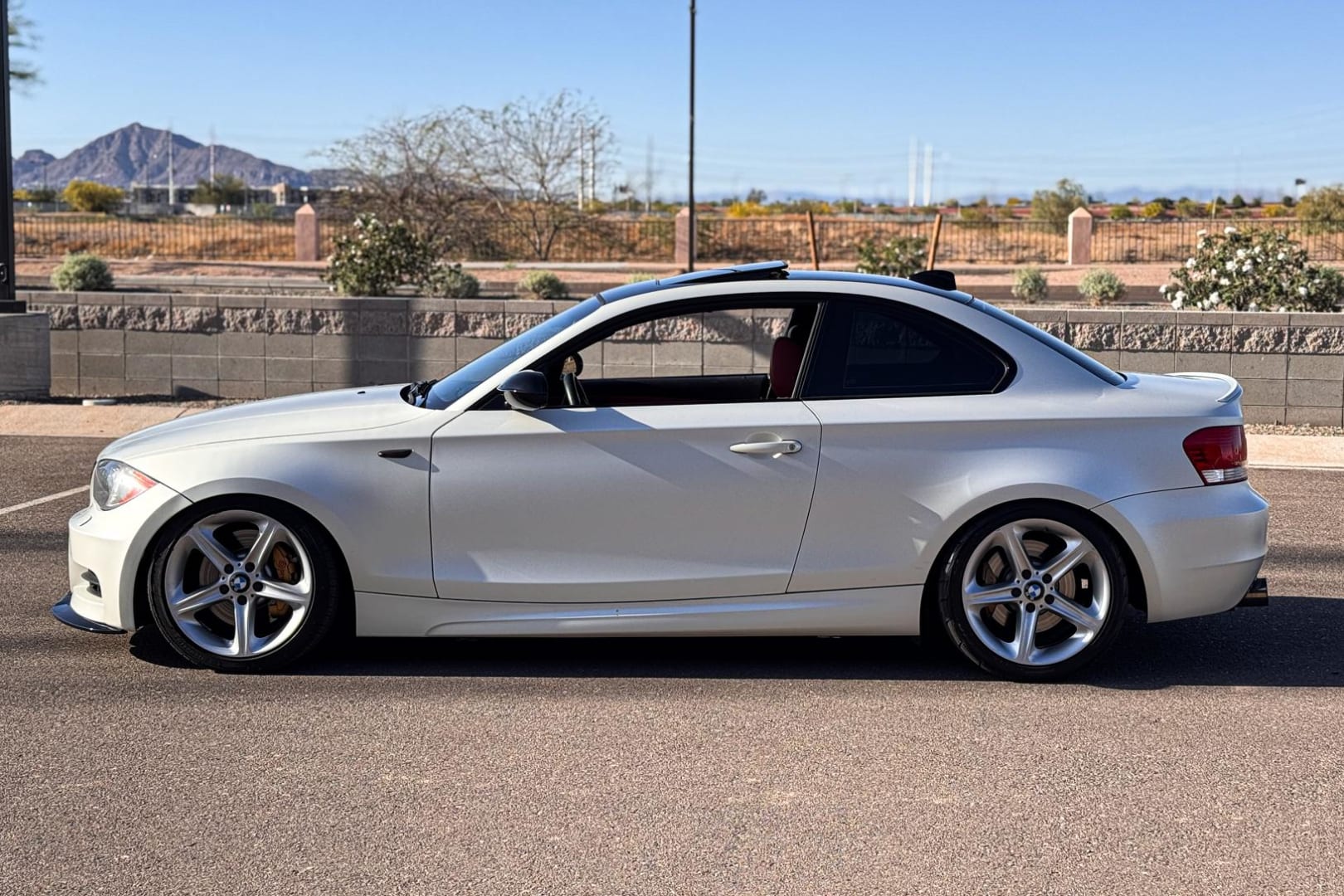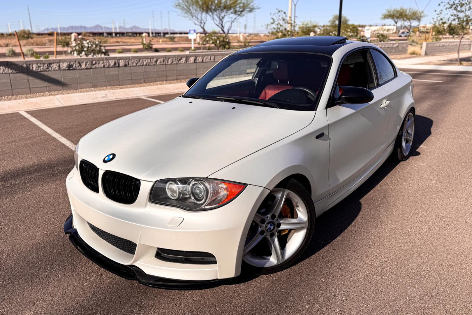 Wrapped in 3M Satin Pearl White, this E82 135i sports a single-hump dash and is wearing key upgrades to take it to the next level.